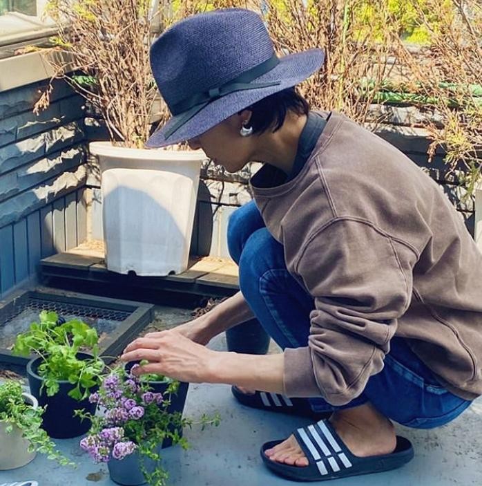 铃木保奈美相当有生活情调,一有空便化身园丁在家种花。画面中的她,穿着罩衫和拖鞋,蹲在地上非常认真地整理着面前的花花草草,很是接地气。尽管衣着朴素,但仍难掩盖她身上的气质,整个人女神范十足。
