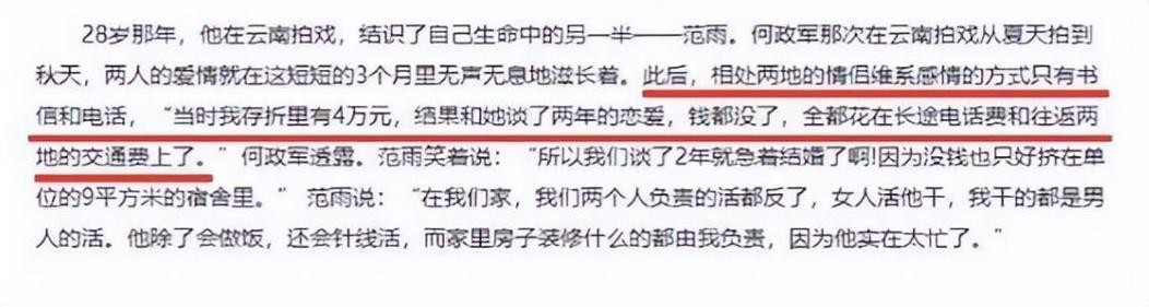 几个月后,戏就拍完了,两人也过上了一段分隔两地的生活。为了表达对彼此的想念,何政军和范雨不是通过书信,就是通过电话来联系。