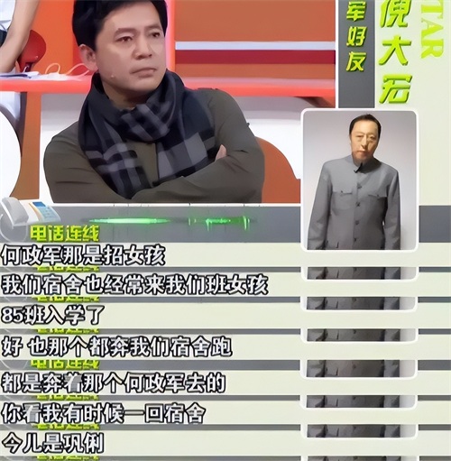 爱学习,成绩也好,加上年轻时期的何政军,长得很英俊帅气,是学校名副其实的“校草”,更是成为了不少女同学喜欢的对象,就连巩俐都跑来宿舍看过何政军,当时两人是同学。