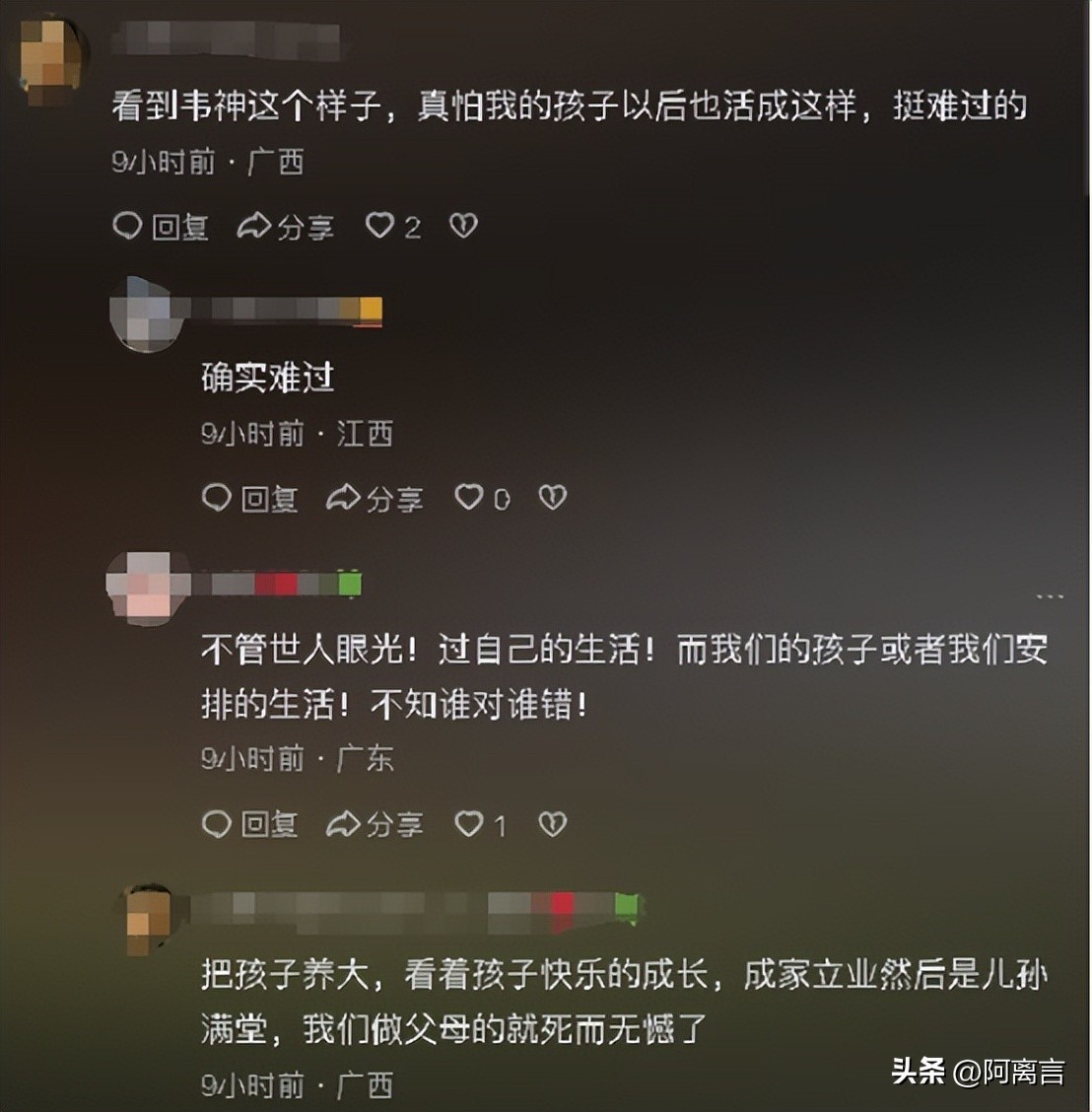 韦神这样的外在形象也不得不让一些家长发表了一些“离谱”的评论,称自己看见韦神这样,十分害怕自己的孩子以后也活成他这个样子,还表示自己挺难过的。