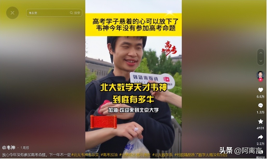 截图自抖音韦东奕谈今年高考