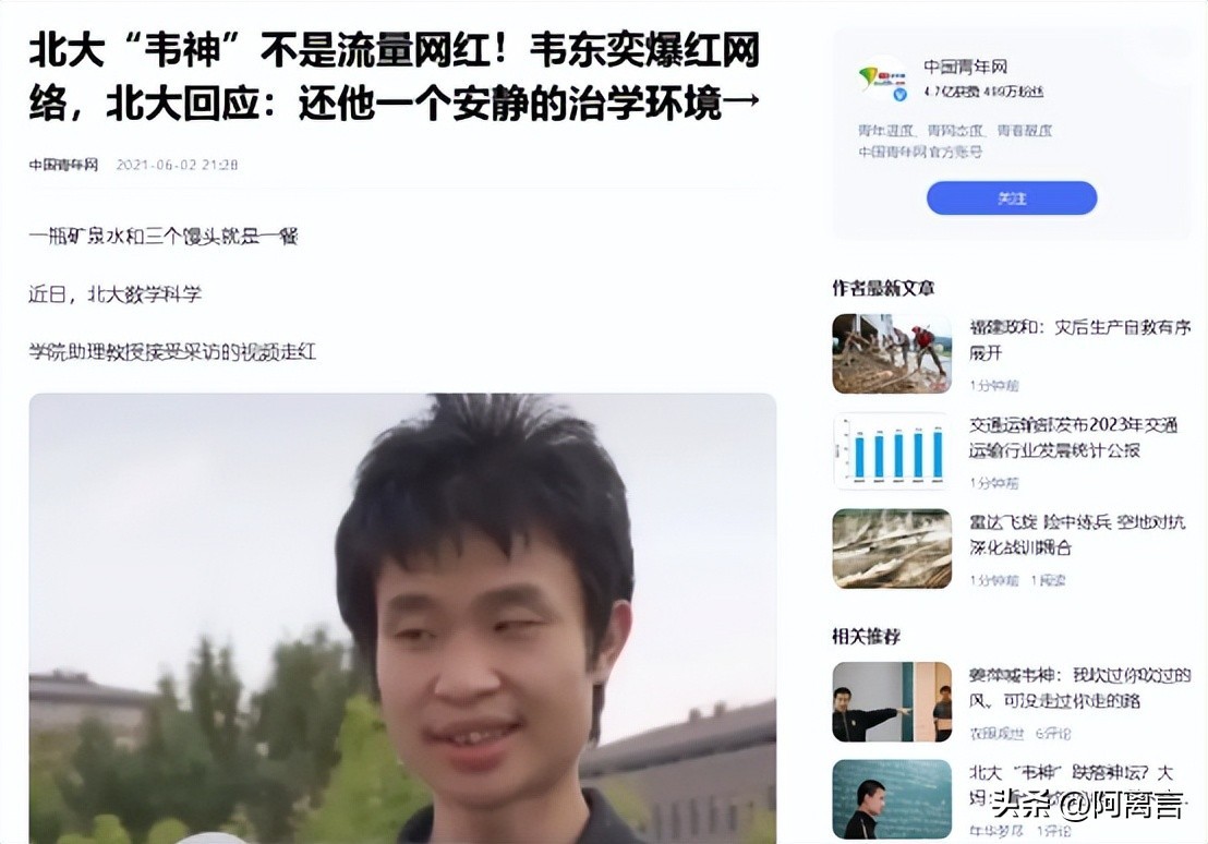 其实早在几年前,韦东奕就因为在街上接受采访时的外在而火遍了全网,更是被网友调侃为“北大的扫地僧”。