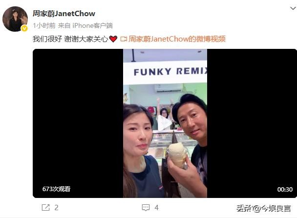一个小时以后,周家蔚也发布了和丈夫一起吃冰淇淋的视频。