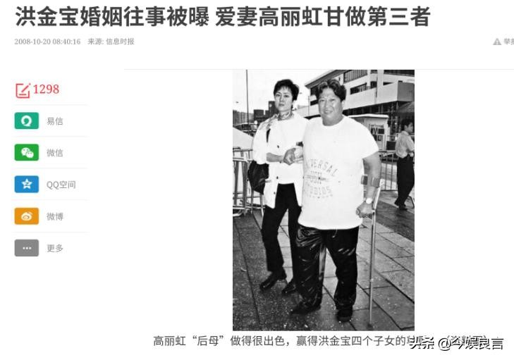 洪金宝婚姻往事被曝 爱妻高丽虹甘做第三者.信息时报.2008-10-2008