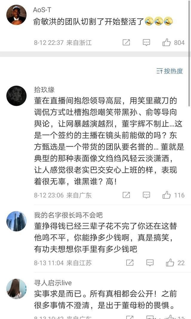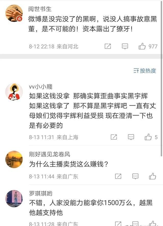 还有河北的网友更直接:"某选够狠的,自董宇辉离职后,天天换着花样的黑宇辉。"看来,在一些粉丝眼中,这次爆料就是在故意抹黑董宇辉。