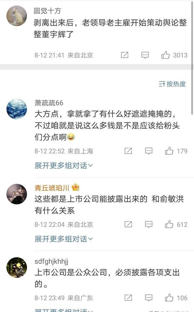 也有很多人认为,这次收入数据的曝光是有目的的。一位北京网友分析说:"剥离出来后,老领导老主雇开始策动舆论整整董宇辉了。"意思是,东方甄选可能想通过爆料董宇辉的高收入来影响他的公众形象。