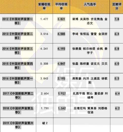 开个小玩笑,不知不觉,这部“中国好声音”大戏 已经超有耐心的走到了第8年。从某种角度来看,它应该不会像美剧《权利的游戏》第八季那样烂尾掉,毕竟这是一个合家欢式的综艺节目,伴随性导致观众不会对它太苛刻,从节目市场来讲,它还是一个金字招牌,我们也能从19号的收视率夺冠一窥全貌。