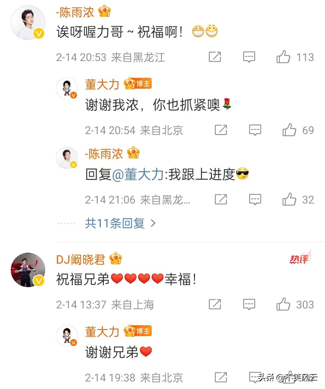 这条微博一发出来,他的几个圈内好友就仗义的来评论表示新婚祝福。