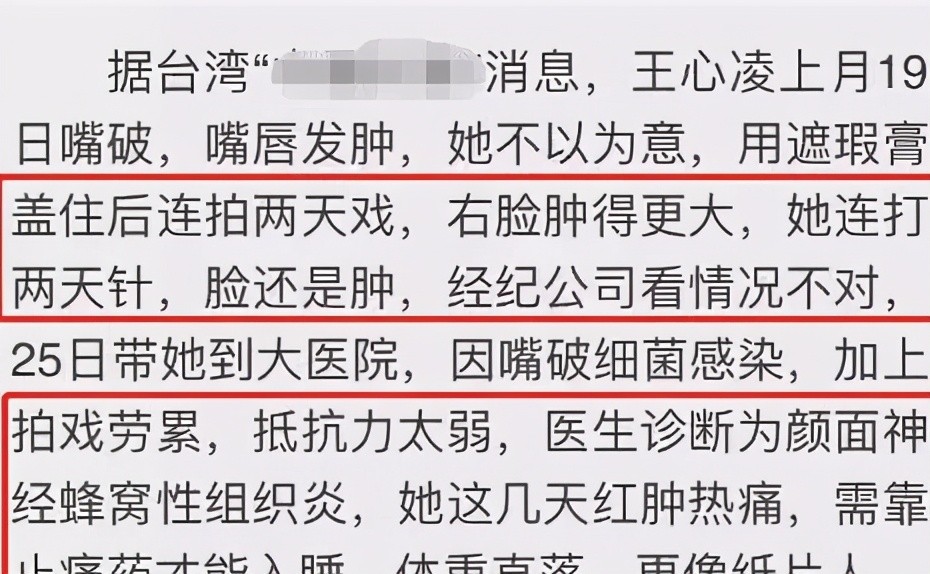 其实王心凌整容是迫于无奈。由于面部感染患上了蜂窝性组织炎,导致神经失调、面部坏死,组织僵硬,后期只能选择整容来修复。大家看到她现在面容僵硬的样子,其实是生病所致。
