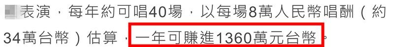 他之前受访时曾说过,靠着《孤单北半球》这首歌,他的商演邀约非常多,一年能唱40场,一场能赚8万元,一年进账3百多万人民币。