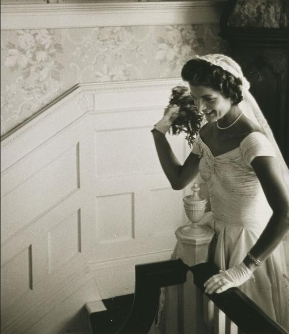 ▲结婚当天穿着婚纱的杰奎琳·肯尼迪