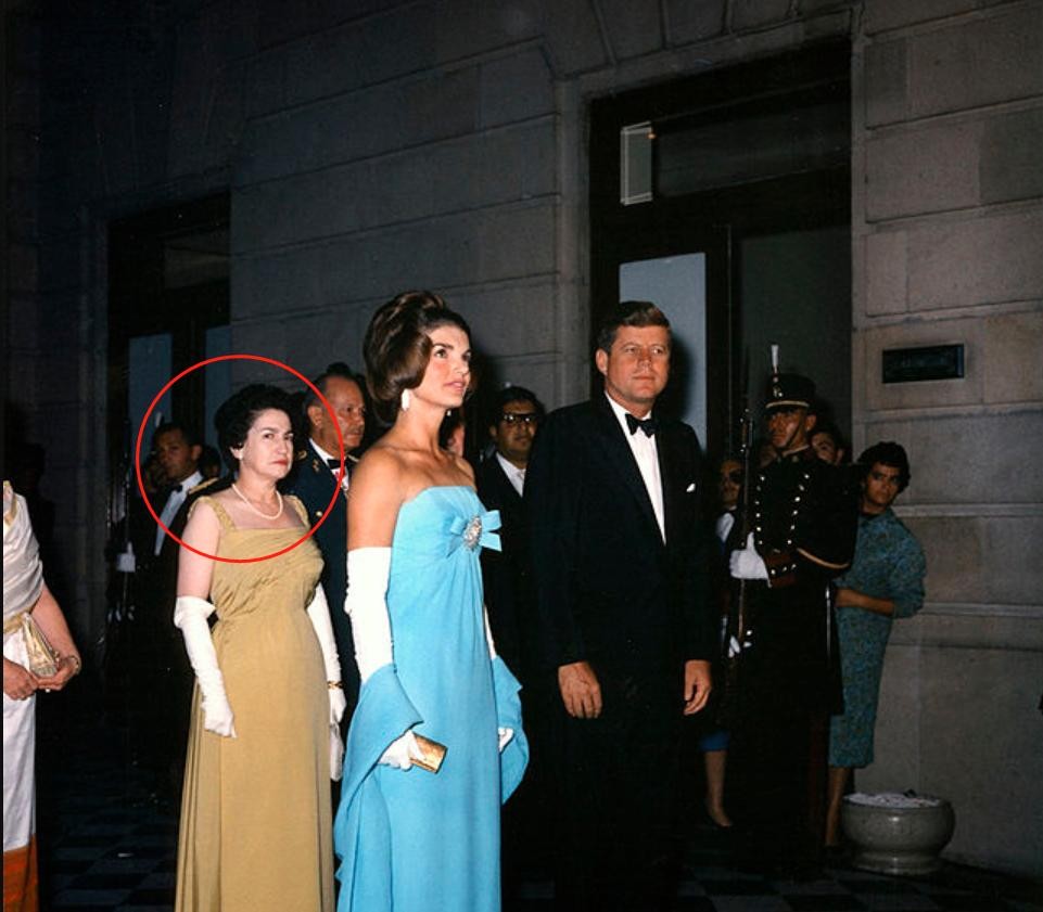 ▲杰奎琳随同肯尼迪一同出访,背后这位大姐的表情有点优秀