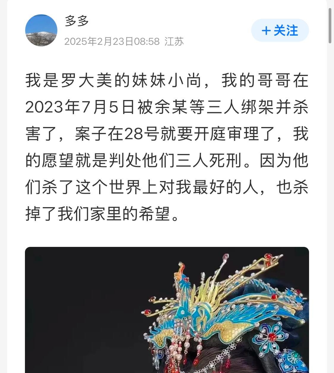 百万网红罗大美遇害案将开庭,三名嫌犯中一人被控故意杀人,家属:是共同犯罪