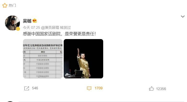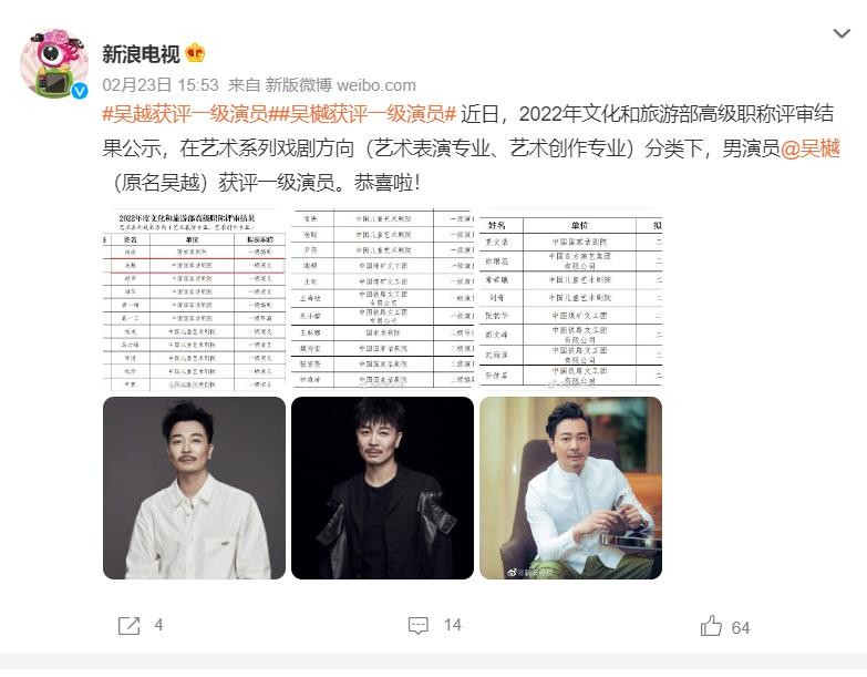 喜讯!吴越正式成为国家一级演员,于毅的两字祝福逗笑网友