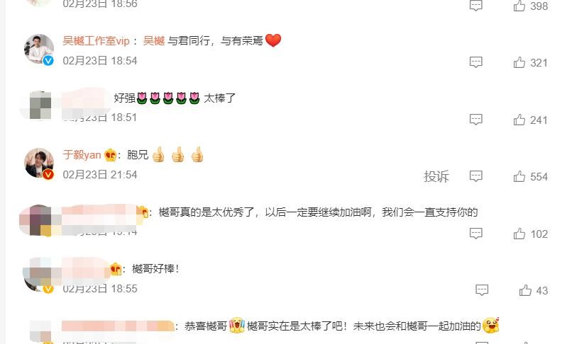 在吴越发文之后好友于毅在评论区中为他送上了祝福,虽然只有短短的两个字三个表情,但是却逗笑了很多的网友。众所周知于毅和吴越的长相是比较相似的,很多网友对于两人也是非常难以辨识,这一次两人梦幻联动于毅评论“胞兄”两字也是让很多网友捧腹大笑。