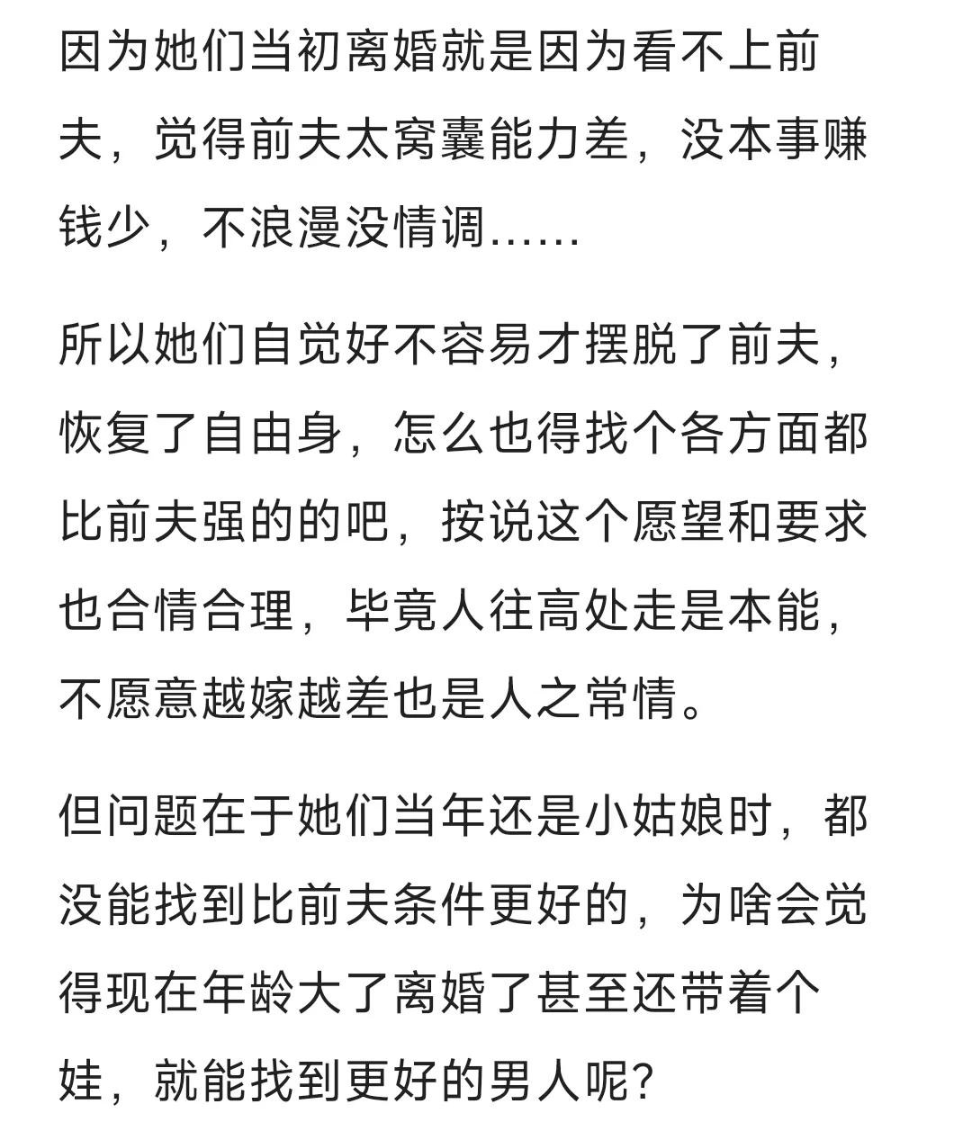 为什么很多离异的30-40岁的女性很难找到老公再婚?网友:心照不宣