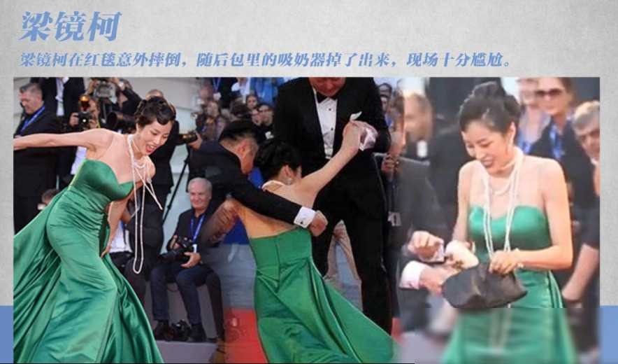梁镜柯在娱乐圈虽然名气不高,但竟然被邀请赴戛纳走红毯,成为她娱乐生涯的一大亮点。然而,她在红毯上的表现却令人匪夷所思。突然摔倒的一幕让人吃惊,更让人震惊的是她居然手持吸奶器。后来揭露,这是一场自导自演的炒作,成就了她的名声,却以丢脸为代价。