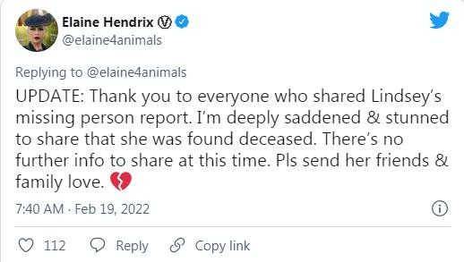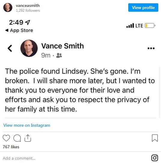 除了她的老公发文哀悼之外,女演员伊莱恩Elaine Hendrix也在自己的社交账号上发文悼念林赛说:感谢所有参与过寻找林赛的人,知道她去世后我深感悲痛和惊讶,目前没有其他信息可以分享,请给她的家人和朋友送去爱吧。相信每个人看到这样的结局也是很悲痛,好好的一个人突然间就没有了搁谁都会难过,希望她的家人一切都好起来。