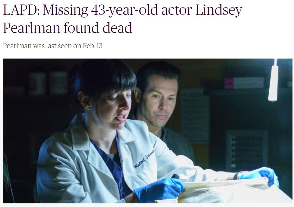 据悉资深女星林赛·艾琳·珀尔曼离奇死亡,终年43岁。遗体五天后在山区被发现,法医经过一系列检查后证实,该女性遗体正是失踪多日的林赛。一名在附近拍摄电影的保安透露称当林赛的遗体被发现时,她被包裹在毯子里,车内到处都是药丸。也不知道她是自杀还是被人陷害,大家对此也是议论纷纷。