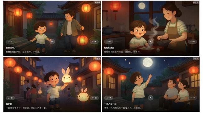 (图片说明:输入 " 给乐乐分享元宵节习俗 ",仅用 3 分钟便生成图文并茂的有声绘本)