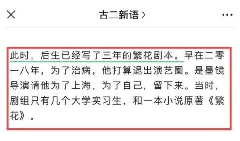 声明里提到的 " 程某某 ",就是这次舆论的爆料人 " 古二 ",自称是繁花最初的编剧。