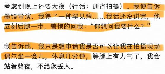 有一次,他表达出自己想休息的意图,导演不但没有体谅他、安抚他,反而紧张地问他 " 想要什么 ",仿佛是担心他趁机讹人。