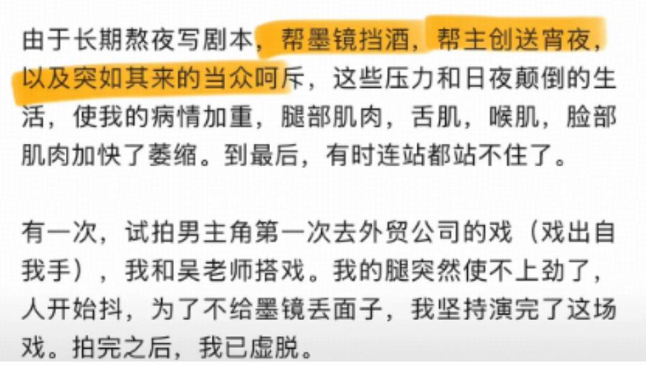 他还说,自己又写剧本又当助理,但一分钱稿酬都没有拿到,只有每月几千的工资。
