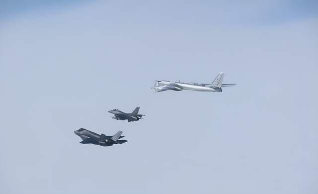 【美军 F-16、F-35" 伴飞 " 俄军图 -95】