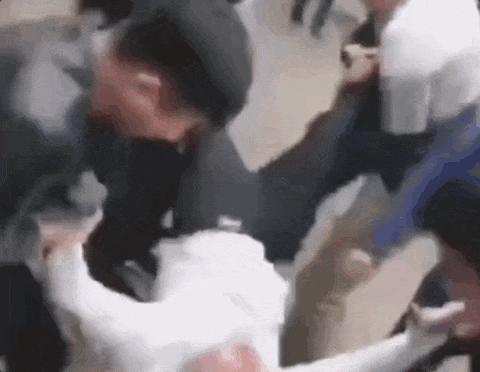有人被泼面粉、再泼冷水,最后拳打脚踢,不知不觉变成了群殴,扫把敲打,拳头乱舞。