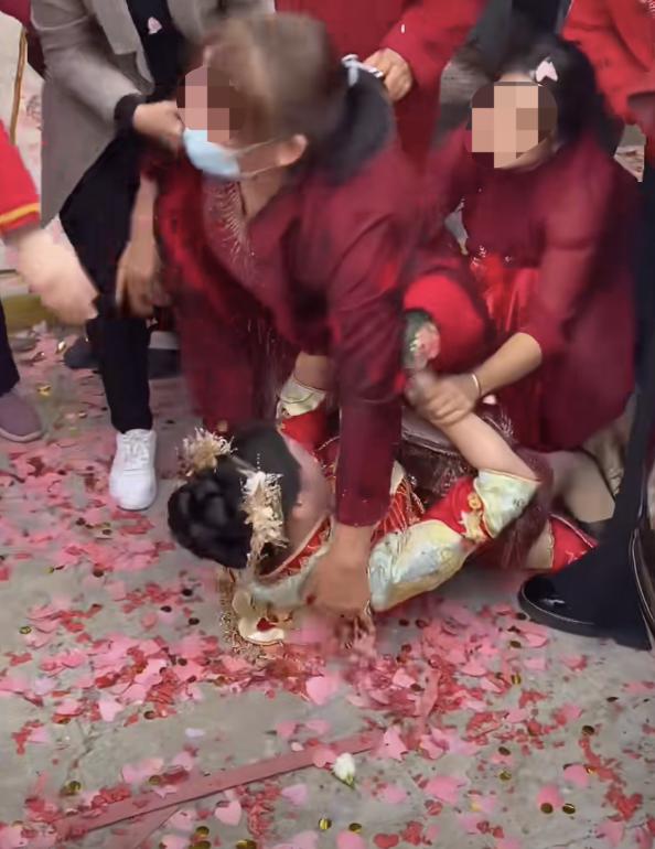 即便有人在一旁大喊——"新娘子摔了",也没人停手。