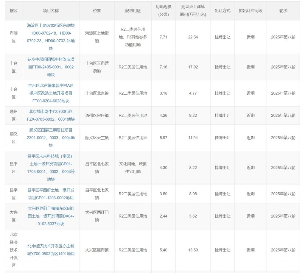 海淀上地领衔,2025北京第八轮拟供地清单出炉