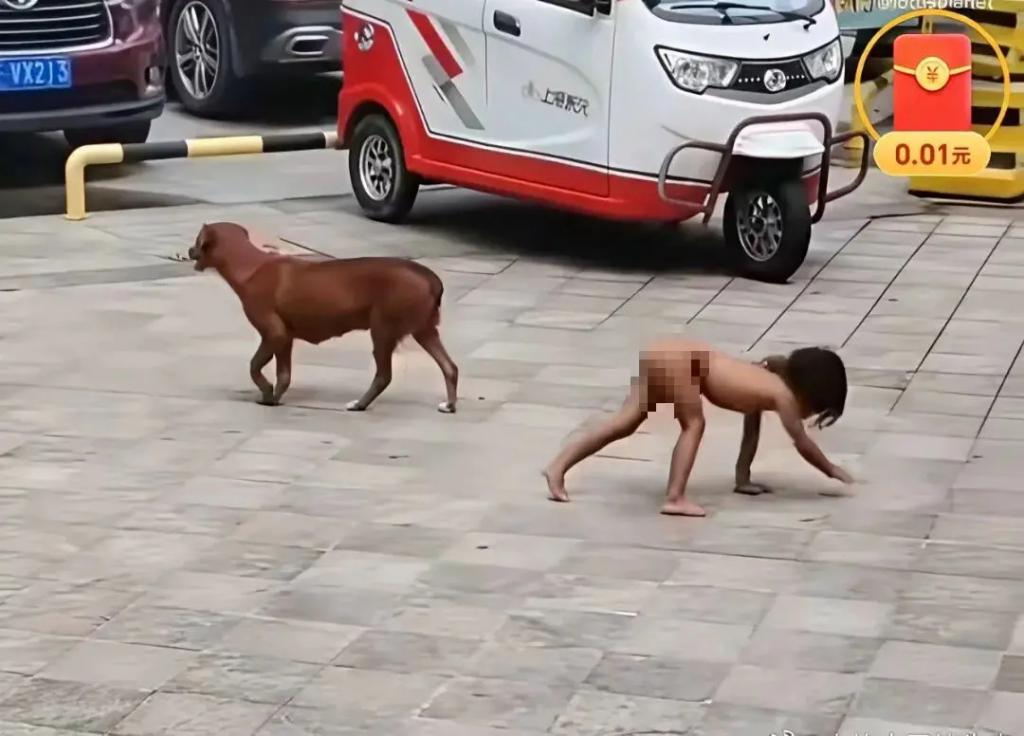 整个事情的引爆点,始于 10 月 16 日网友在四川雅安石棉县某高速服务区拍摄的一段视频。一个看上去只有三岁左右的小男孩,浑身赤裸,头发蓬乱,手脚并用地在地上飞快爬行,甚至直接用嘴去啃地上的食物。网友称," 孩子类犬,吃饭,爬行,跑步都像狗 "。而貌似孩子父母的一男一女就站在旁边,抱着一个更小的孩子。有好心人看不下去,想上前帮忙,却被这对父母直接拒绝。