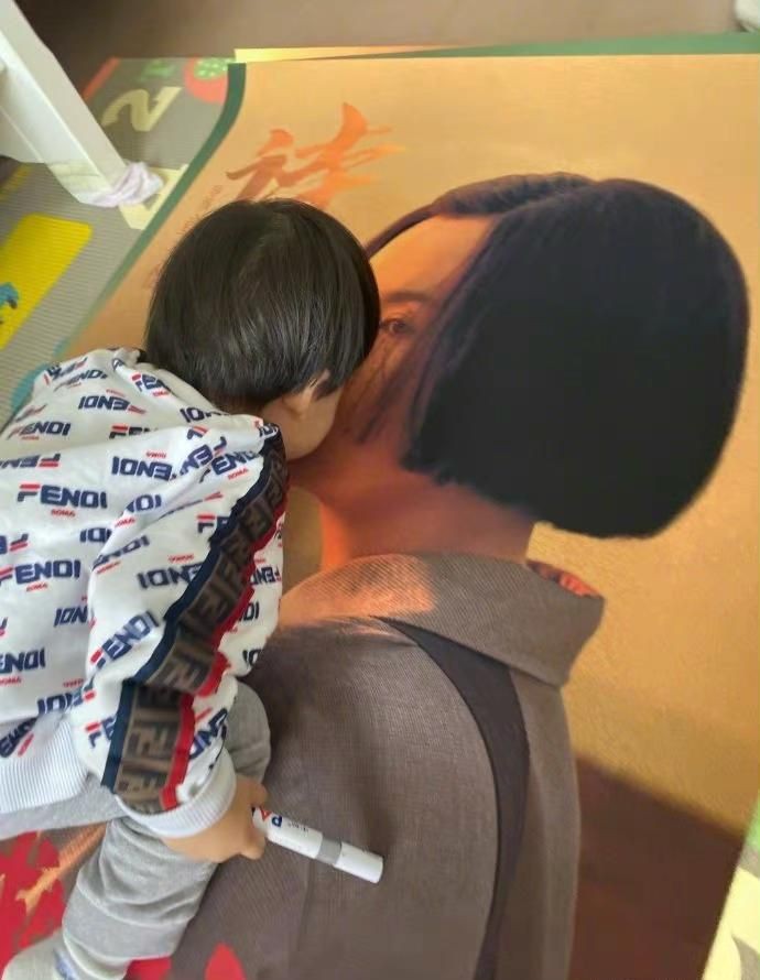 章子怡紧紧的抱着自己的孩子,一手抱着他的脑袋,一手抓着他的胳膊,看起来很是亲昵。