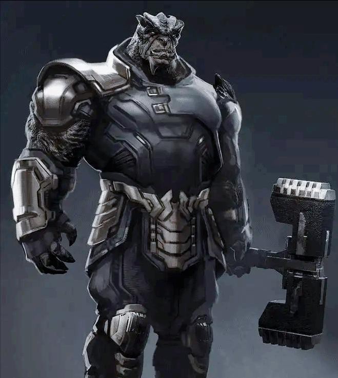 黑矮星的体型巨硕,是一个非常魁梧的战士,多年的战争使得他有个小爱好,那就是身上挂满了战利品,同时腰上还别着惊奇队长一样的腰带,在电影中我们看到,这个大家伙是唯一一个不会说英语的侵略者,说明漫威给他定位就是个打酱油的角色。和他追随灭霸的家伙不同,黑矮星是为了种族的生存,在不得已的情况下投靠灭霸,向其效忠。