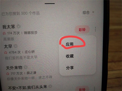 我们找到自己适合的版本,点击右边的三个小点,选择应用,最后点击设为电话铃声就可以了,设置方法就是那么简单(如上图所示)