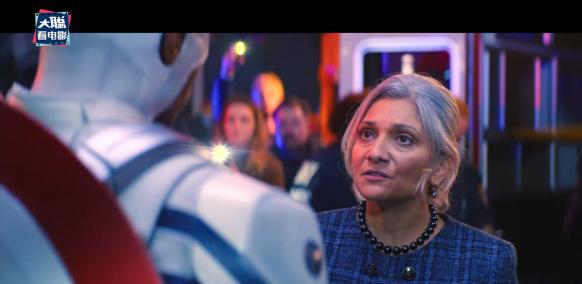 山姆洗了个澡换好了装赶往现场,巴齐在现场撞见了cosplay有点像吴彦祖的自己的莎伦,这项换脸技术此前在《美队2》中寡姐就有用过。