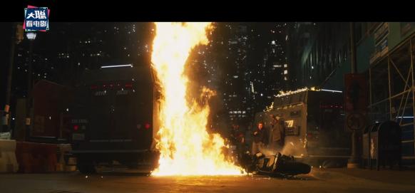 之后卡莉直接把人质车开到工地建筑边缘,想让其自由落体,约翰赶到的时候,一边是卡莉逃跑,一边是人质车即将坠落,换句话说,一边是复仇,一边是救赎。