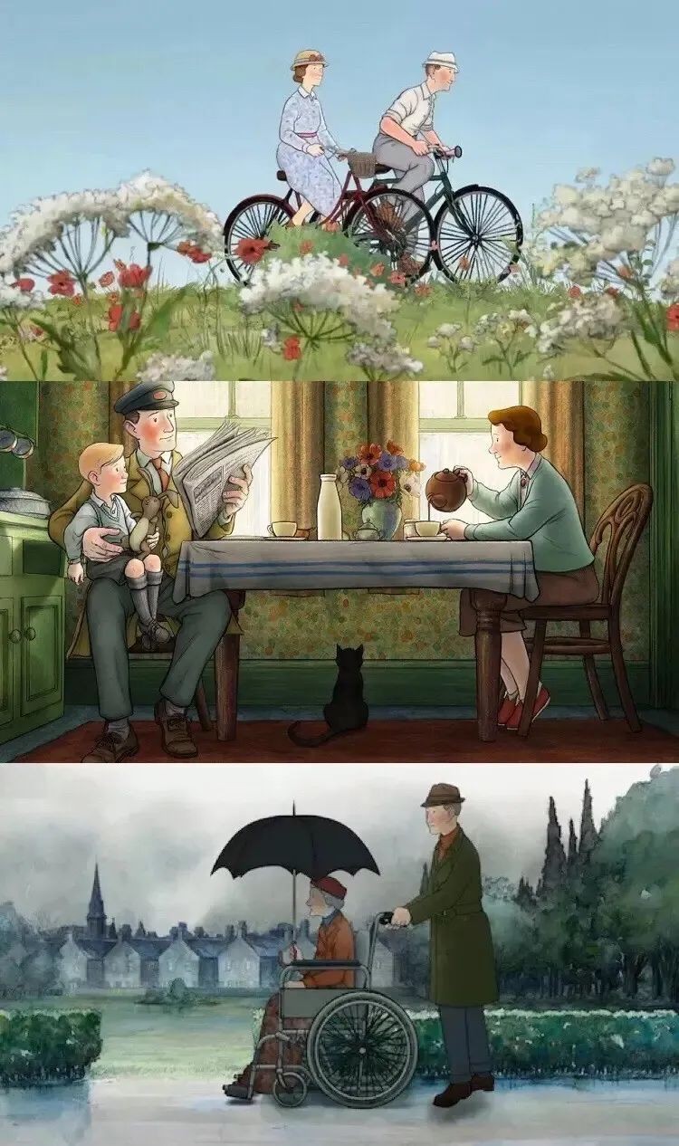 有人说《伦敦一家人》像是中国的《父母爱情》,也像是《平如美棠》。近乎无痕的故事,好像是翻阅了布里格斯的家庭相册,见证了一家人在半个世纪中的每个关键时刻。观众能感觉到埃塞尔与欧内斯特的爱情和他们对孩子的爱,更能体会到年老的儿子对父母以及从前岁月的深深回忆。