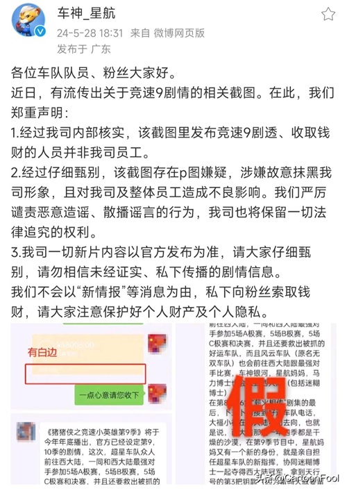 5月28日,车神_星航官博就打假了“关于竞速9剧情的相关截图”,