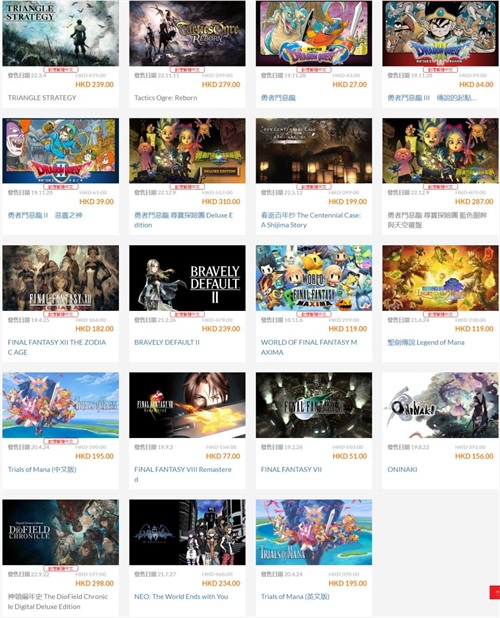 SE开启优惠活动,其中《皇家骑士团 重生》史低,折后279港币;《最终幻想12 黄道年代》平史低,折后182港币。此外《三角战略》《神领编年史》等作品也均在打折中。