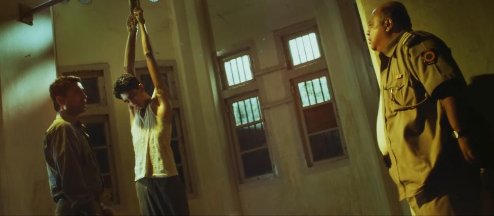 昏暗灯光下,男主贾马尔・马利克,一个来自孟买贫民窟的年轻小伙,被警方以涉嫌作弊的罪名严刑拷问。
