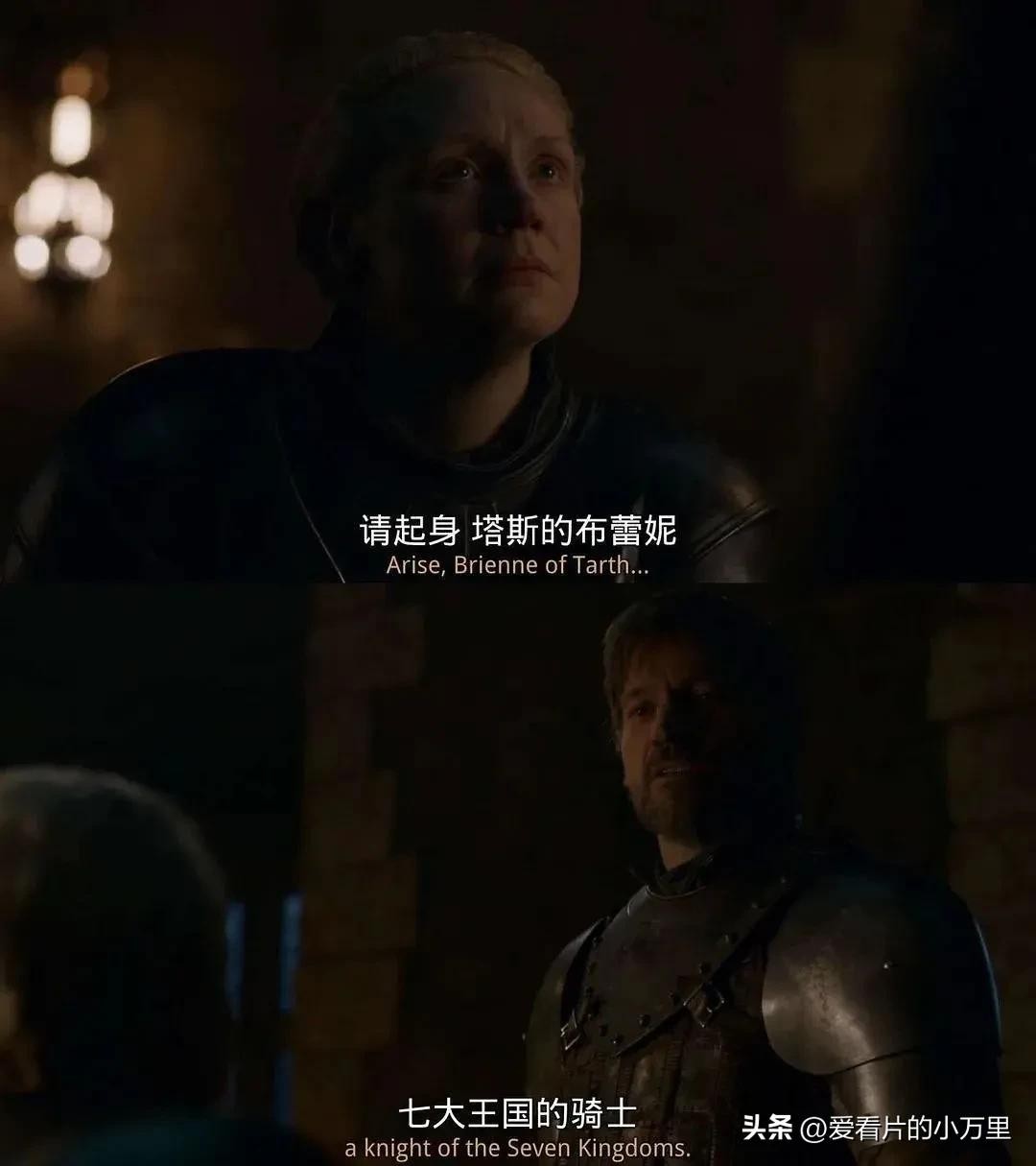 最后生死大战的前一晚,她被集体拥戴,受封为骑士。那一刻,我们都很感动。终于,布蕾妮实至名归了!