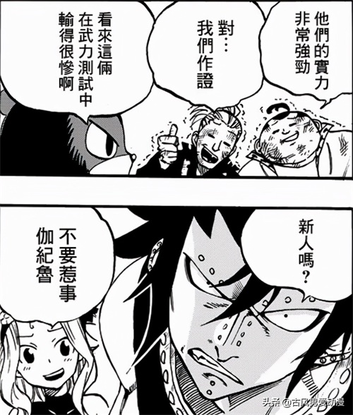 来了新人之后,大家的热血也被点燃了,于是用武力测试为理由来和新人挑战。一瞬间小胡子男子就打败了追随蕾比的二人组。,看到此况,伽吉鲁也跃跃欲试,被蕾比拦了下来。