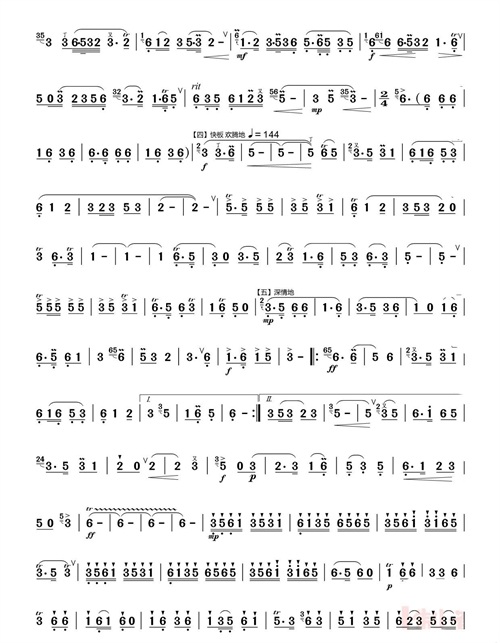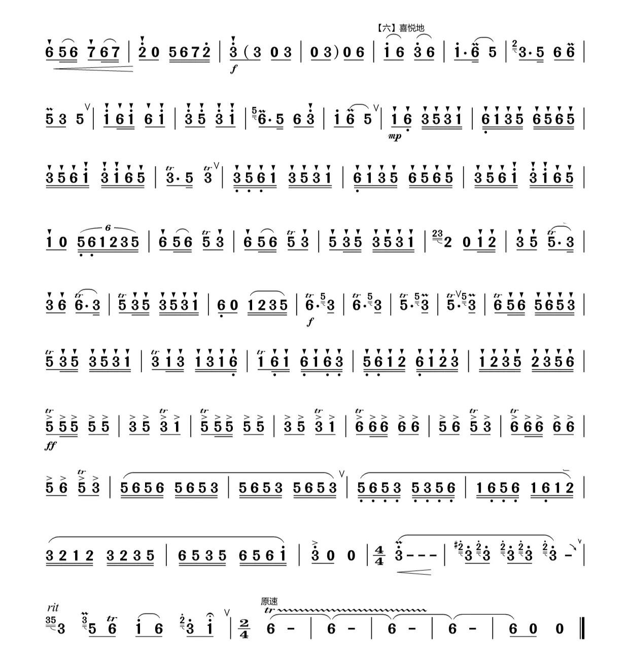 快板旋律明亮欢快,富有跳跃感,在宫徵羽调式的转换中,营造出热烈而喜庆的氛围,几番递升的旋律更是将乐曲的情绪层层推向高潮,使听众沉浸在欢快的氛围之中。