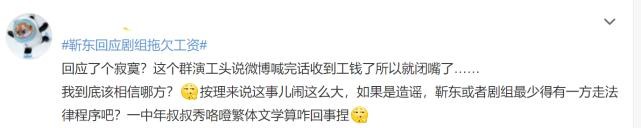 事情发酵后,有群演出面发声表示工资已经结了,随后爆料靳东新戏剧组的网友也称是财务那边对接出了问题,工资已经结算完毕。