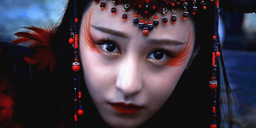 《冰火凤》中的千雪妭黑化后不但一秒化了个粗黑的眼线,眼角还画上了凤尾形状的红色眼妆。