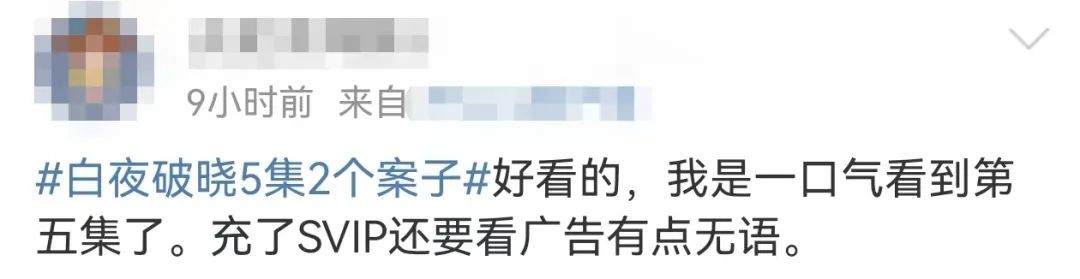 然而,尽管剧集讨论度很高,但多位观众反映:“广告太多了”“充了SVIP还要看广告有点无语”。还有人吐槽称:“是广告里面插了个剧吗”。