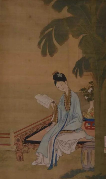 或许是奉行"女子无才便是德"的宗旨,我们看到以美女为题材的绘画虽多,但画中才女的形象却少之又少,而且直到晚明时期才出现此类绘画。接下来,就以《春闺倦读图》为例,谈一谈画中隐喻的构建,以及女子读书场景的深意款款。