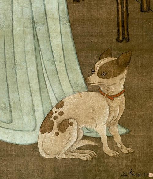 《春闺倦读图》中的小狗
