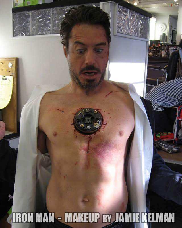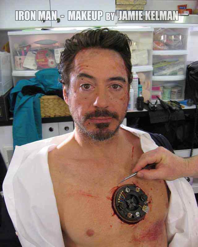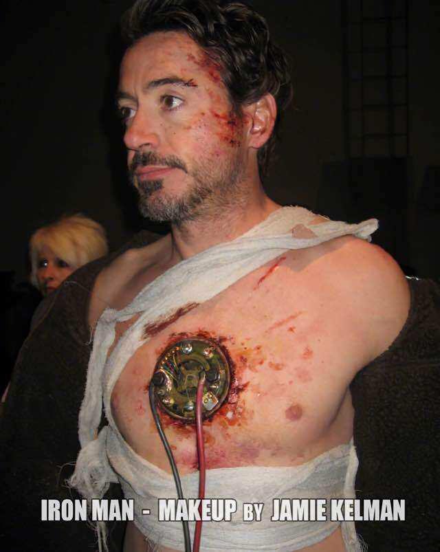 从这几张曝光的剧照可以看出罗伯特唐尼为此所付出的努力,每天的妆容都需要经历几个小时候,逼真的血迹,肉体与胸口出的装置完美结合,给人一种真实的感觉。也难怪从第一部《钢铁侠》开始拯救了漫威宇宙,深受光大观众的喜爱!